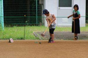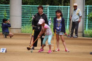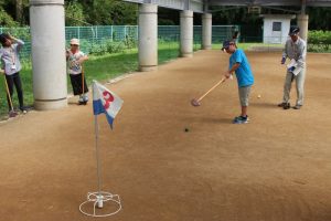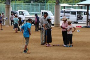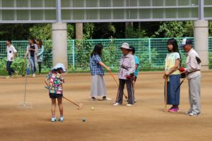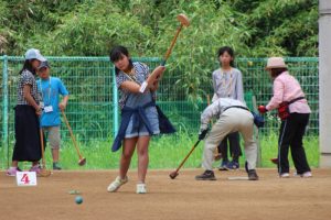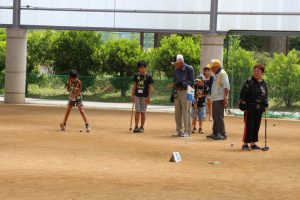 寿学級の高齢者の方々と、世代間交流グラウンドゴルフをしました。