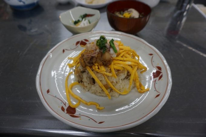 ちらし寿司はエビやホタテ、椎茸、あなごなど入って具だくさんでボリューム満点でした。