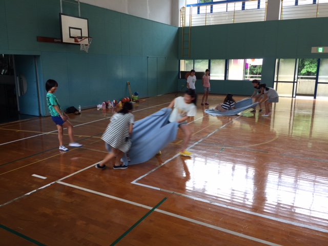 館内オリンピック、さっきは毛布を使った人運びでした。
