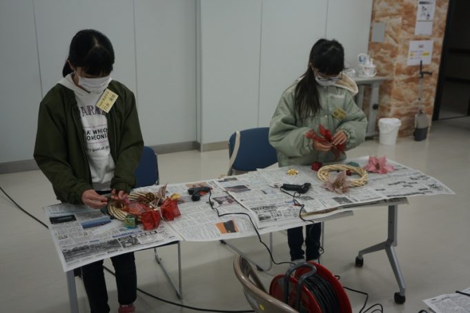年末恒例の成人セミナー「正月用花飾り作り」を開催しました。今年も楽しみに参加する方もいらっしゃいました。