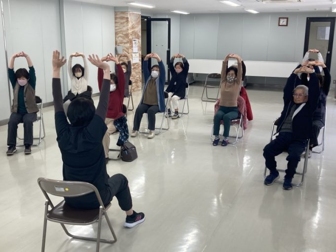 椅子に座ったまま出来る体操を教えていただきました。しっかりストレッチをしたり、転倒予防のためにつま先を上げる運動をすることが大事だということを教えていただきました。