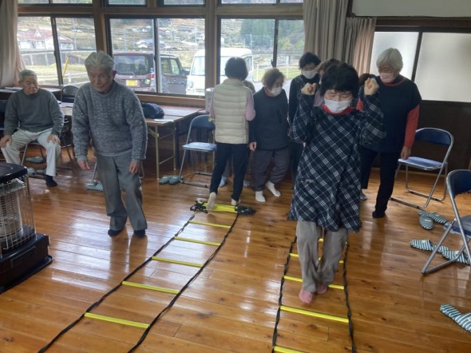 ラダーを使って多重課題運動をしました。多重課題をすることによって、脳の働きも活性化するそうです。皆さん真剣に取り組んでいました。