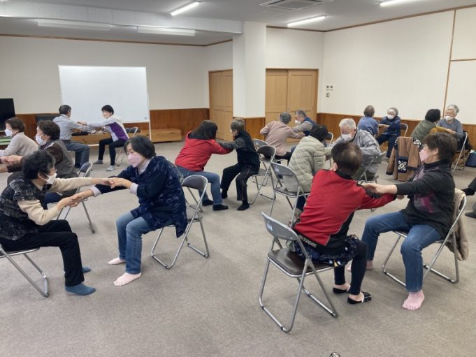3月19日は天瀬公民館、25日は出口コミュニティセンターにて健康体操を行いました。講師は新川美奈子さんです。