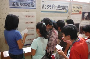 今年は、展示コーナーにおいて、モザンビーク、バングラデシュ、キルギス、フィリピン、体験談コーナー