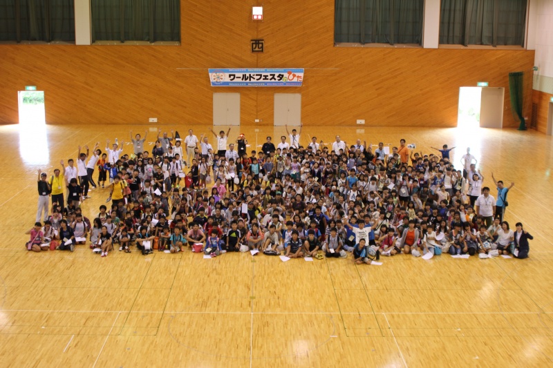 「ワールドフェスタinひた」は、公民館の青少年健全育成事業に参加する市内小学生児童を対象に、国際理解や他校児童との交流を目的に実施しているもので、今年も300人を超す児童の皆さんが参加しました。