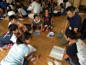 2日目 青少年事業に関する研修。東有田公民館にて、小学生児童の野外活動指導実習。