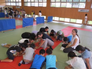 大会では、アフリカ、マダガスカルの遊び「クバーラ」体験をはじめ、JICA(国際協力機構)の隊員による体験談コーナー、世界各国の展示コーナー、そして大分県内の留学生や市内小学校で英語の補助指導員(ALT)の先生方による、遊びやふれあい活動など、国際色豊かな活動を行いました。