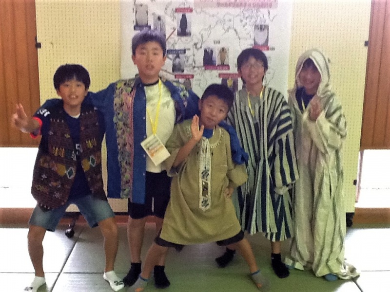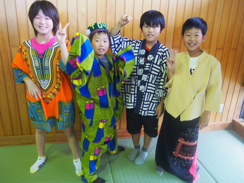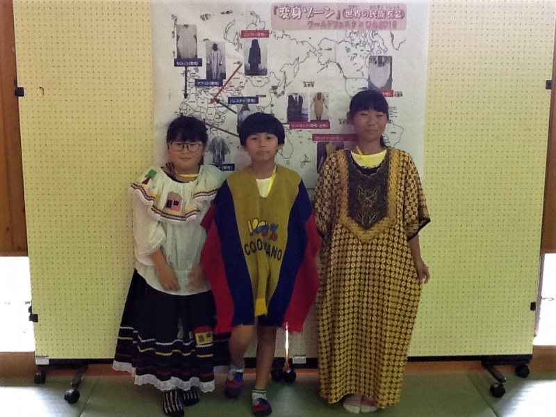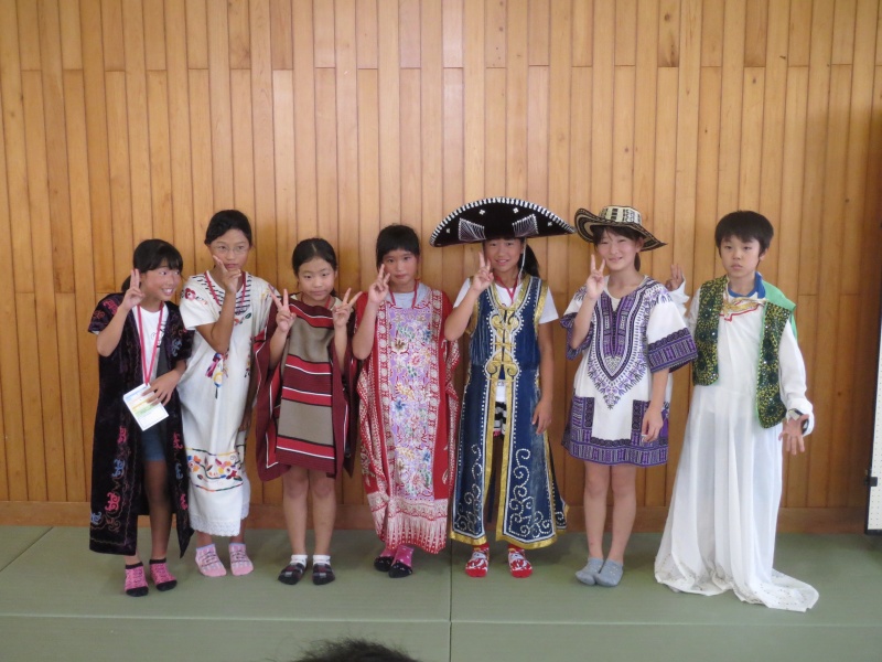 プレーゾーンでは、世界の民族衣装(アフリカ・東南アジア・中南米10各国12衣装)を着たり、世界の遊びコーナーのモンゴル・ネパール留学生の皆さんとふれあうことができ、児童の皆さんにとってはたいへん貴重な時間となったのではないかと思います。
