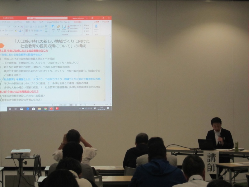 地域の防災・減災力向上のための実践的な知識・技術の習得を図ることにより公民館職員としての資質の向上を図り、すべての地域住民の安心・安全を守る「防災拠点」としての公民館のあり方を考える研修会が開催されました。