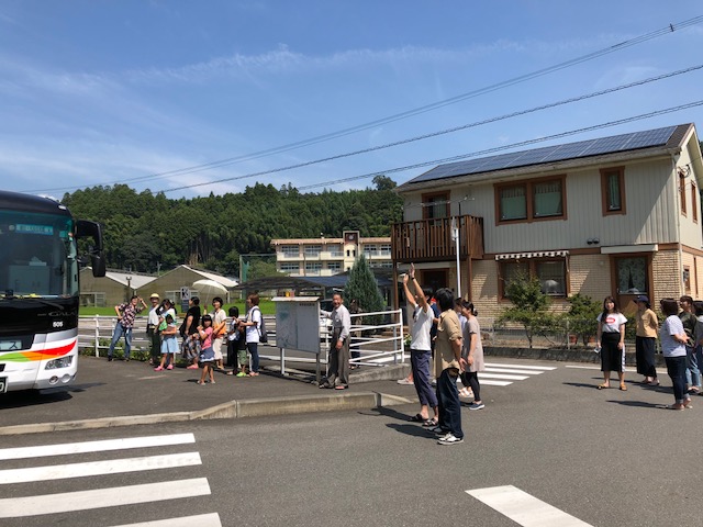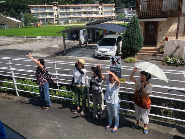 保護者の皆さまにお見送りいただく中、出発しました。