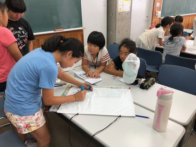 班ごとに、チーム名を決め、目標などを書いたチームフラッグを作りました。