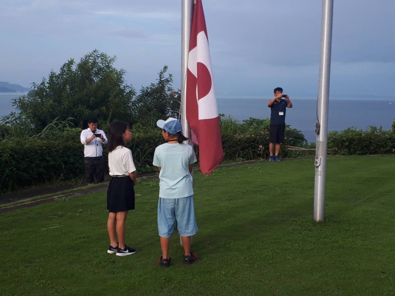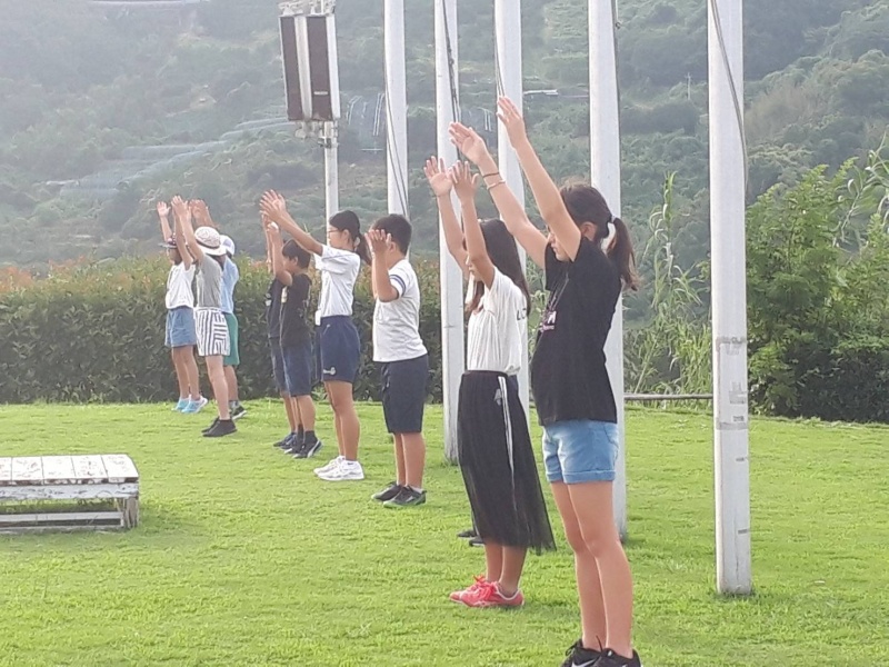 天候も回復し、屋外のつどいの広場で、朝のつどいが行われました。
