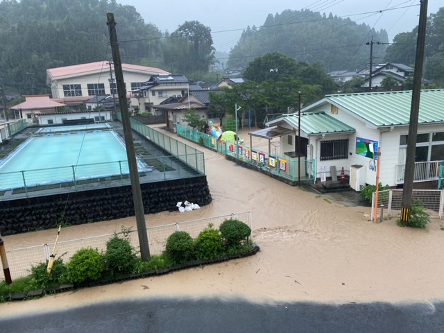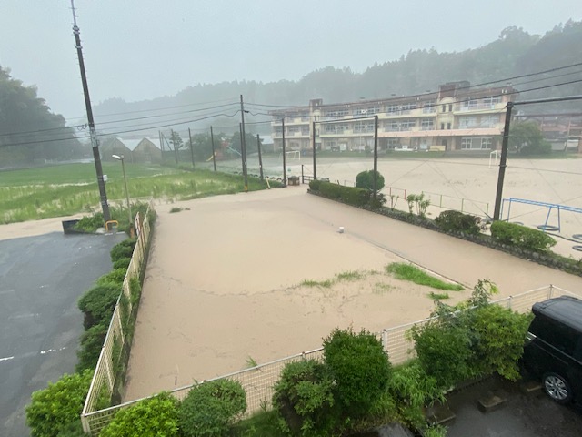 朝日小の運動場も水が流れてきて、あふれています。