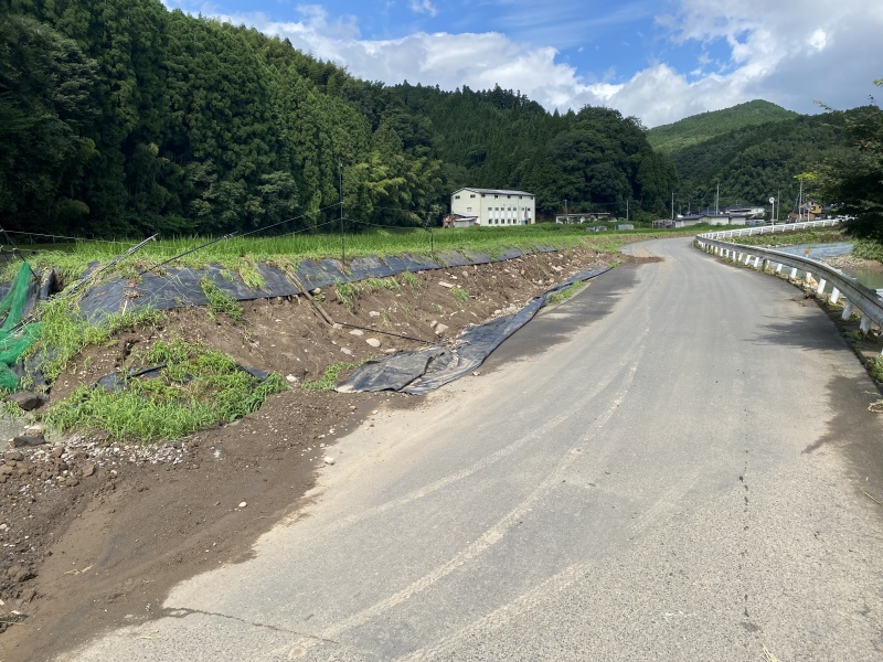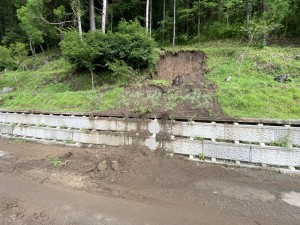 聞いた話では、道路に水が溢れている個所や、のり面が崩れているところも