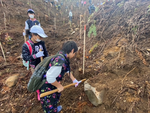 協力しあいながら、苗木を植え付けました。