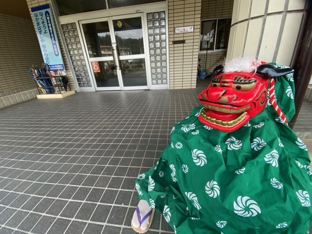 獅子くんが、玄関先でお出迎え。