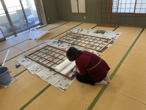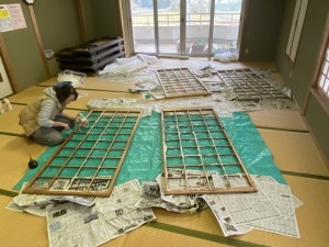 館長が1,2階の和室の障子の張替えをしてくれました。