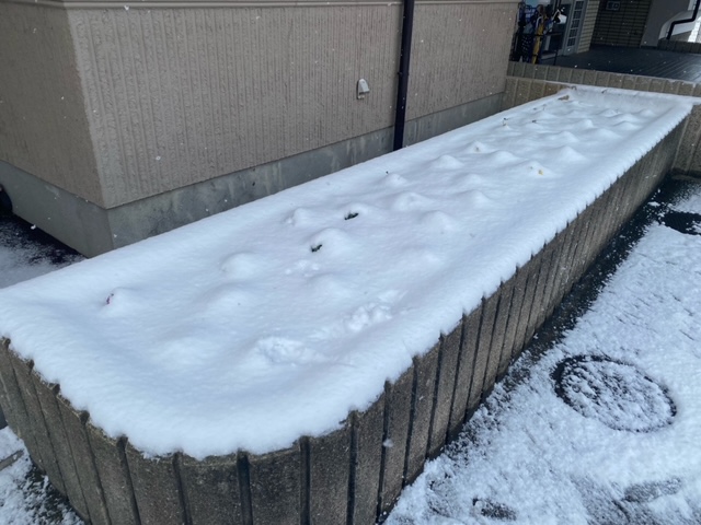 昨日の夕方から、雪が積もり始めておりました。