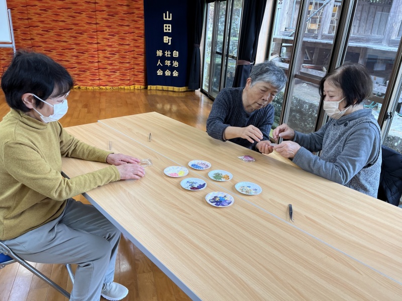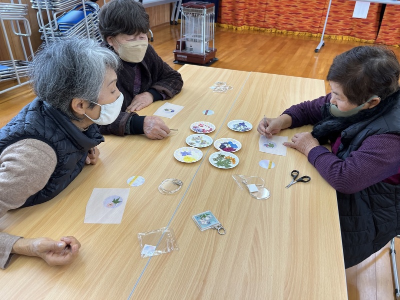 平島館長指導のもと、押し花を使ったしおりを作りました。