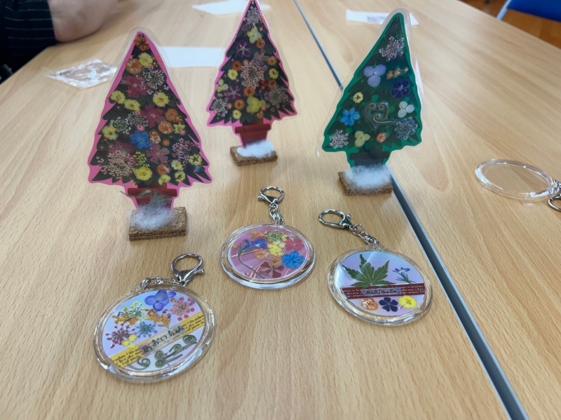 今回は、キーホルダーとクリスマスの置物を作りました。