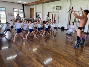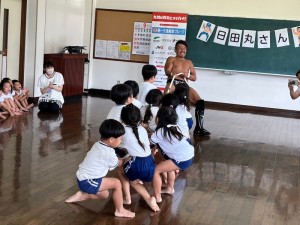 今日は、朝日子ども園の園児たちを対象にしての