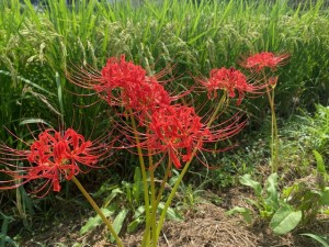 朝日公民館の事務室前の花も、暑そうです・・・。