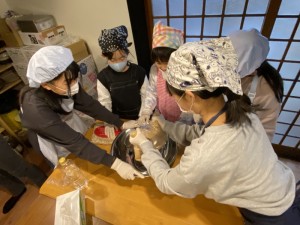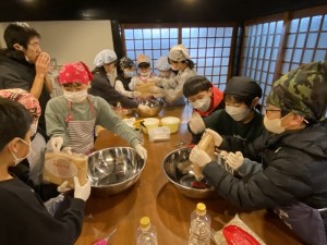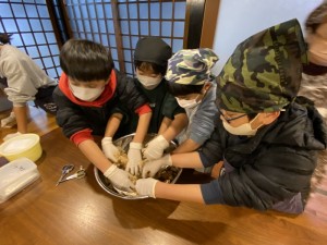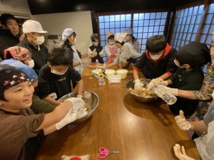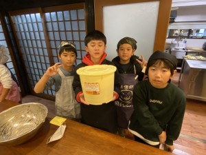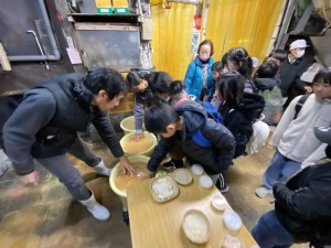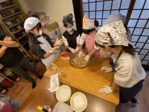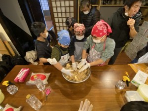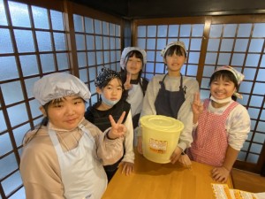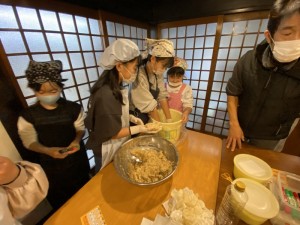 麹や塩等を入れて混ぜて、樽に入れる体験となります。