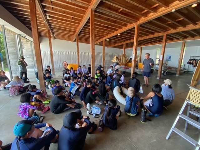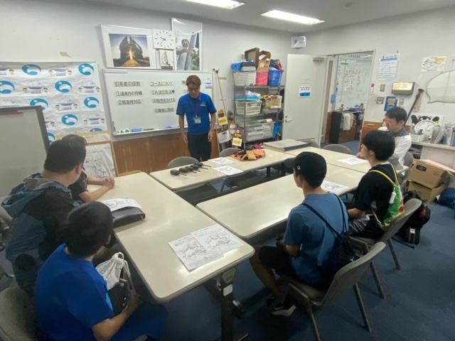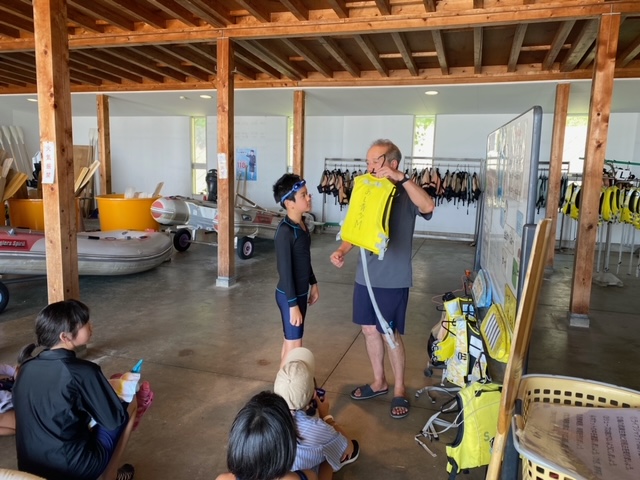 救命胴衣の着方とかの説明をうけます。