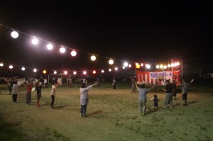 ふるさと音頭など、円になって皆さん踊っていました。