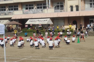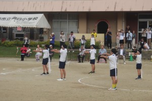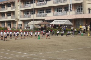 応援合戦は、朝日小学校のコミュニティスクール委員さんが務めることになっていて、