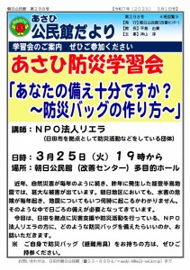 いざとなった時に備えは大丈夫か ~あさひ防災学習会~