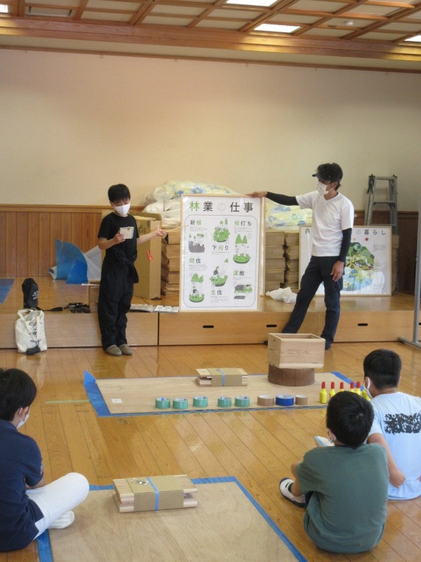 木育の授業では石井小学校6年生の髙村虎志郎君が、林業についてパネルを用いて説明をしてくれました。