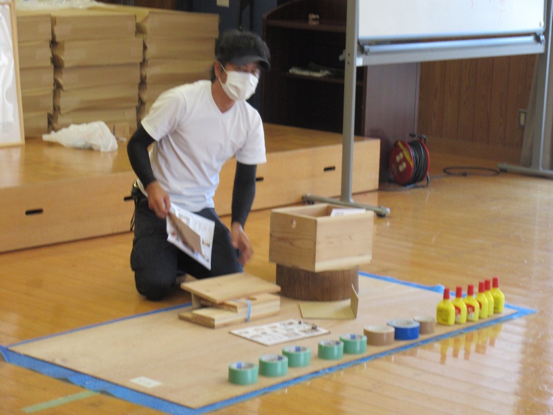 その後、髙村真志氏・宮崎桂一氏の指導の下、木材を使った工作「木のおもちゃ箱」を行いました。