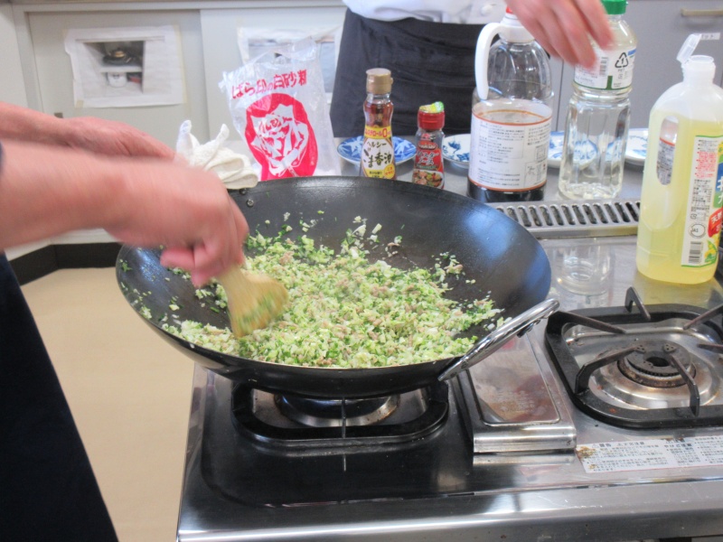 また、混ぜ合わせたタネを加熱する中で水分が出てきますが、うまみを閉じ込める為、しっかりと水気を飛ばすことも大切なポイントでした。