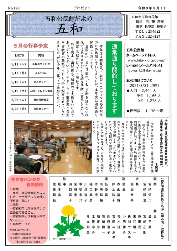 5月1日に五和公民館だより『五和だより』を発行しました。