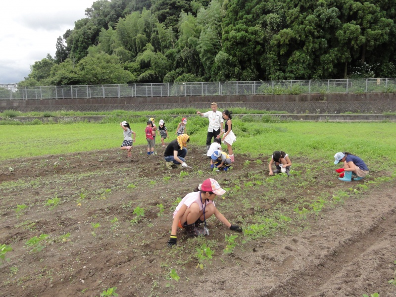 秋にはみんなで芋の収穫と大豆の収穫を行いましょう。