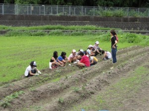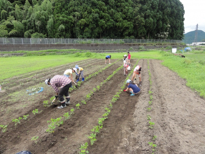 今回は先日植えた大豆の草取りと土かけを行いました。