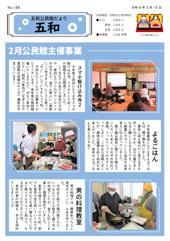 3月15日に五和公民館だより『五和だより』を掲載しました。
