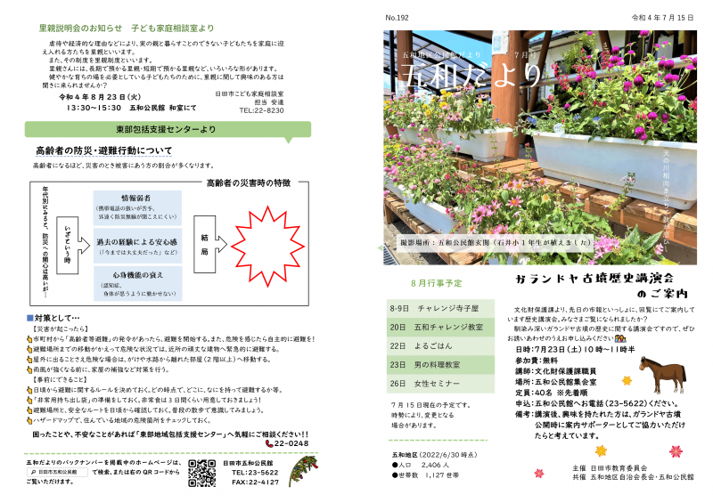 令和4年7月15日に五和公民館だより『五和だより』を発行いたしました。