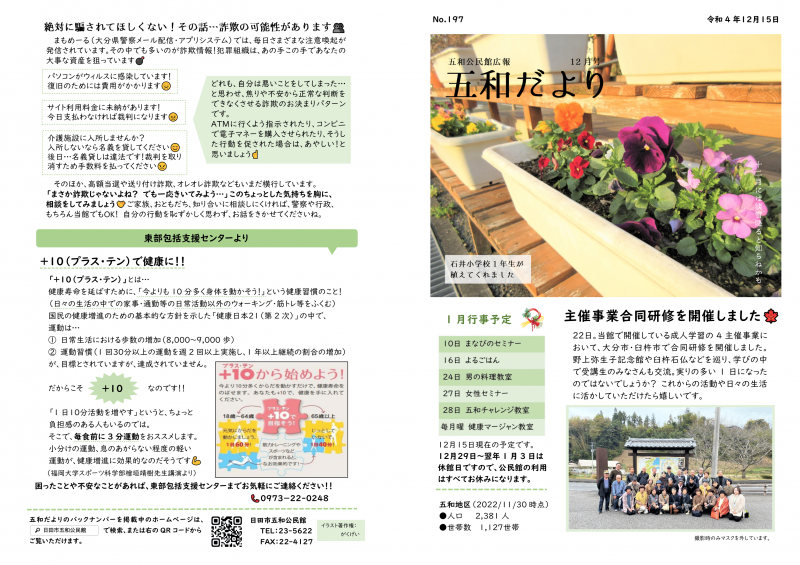 令和4年12月15日に五和公民館だより『五和だより』を発行いたしました。