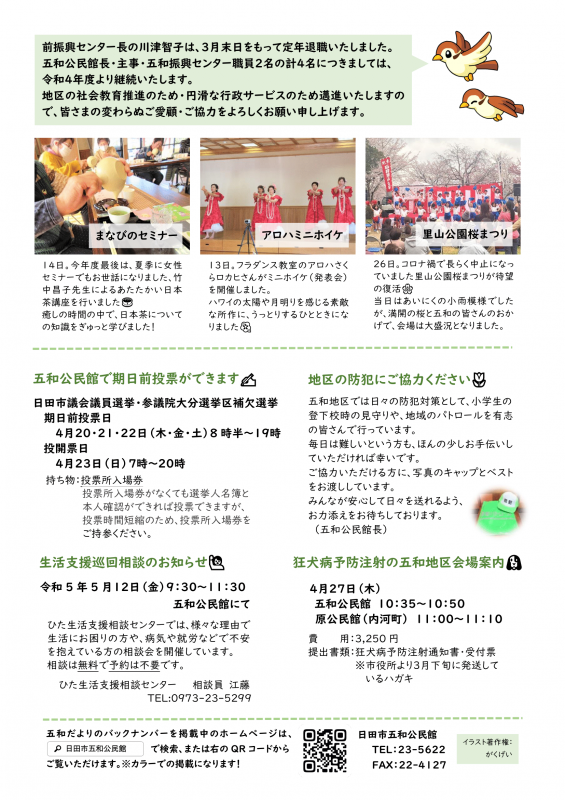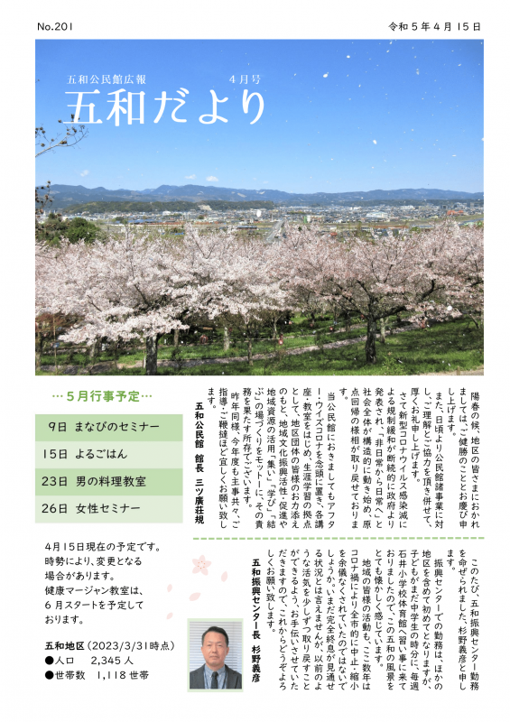 令和5年4月15日に五和公民館だより『五和だより』を発行いたしました。