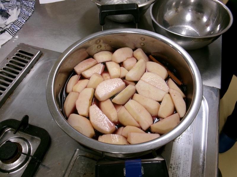 ケーキを焼いている間に、リンゴのコンポートを作ります。