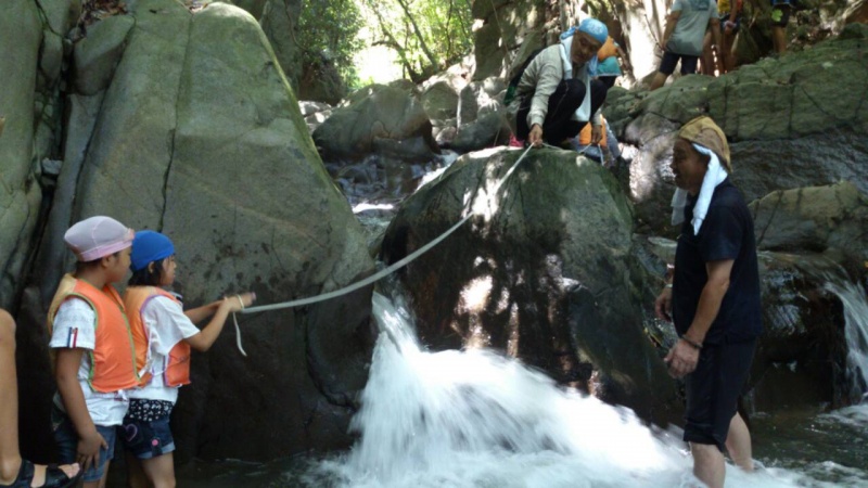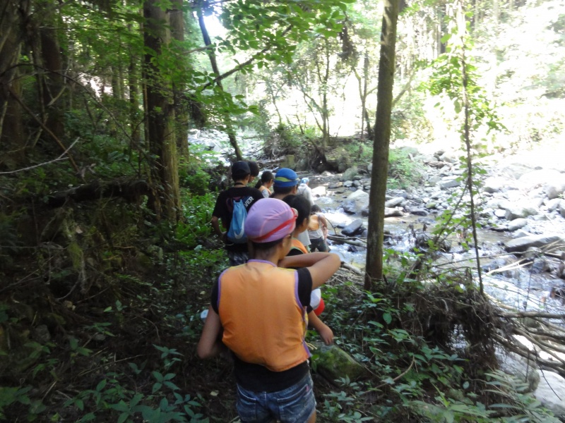 川の中を遡って行くのは初めての子たちでした。どの石が滑りやすいのかを体験しながら