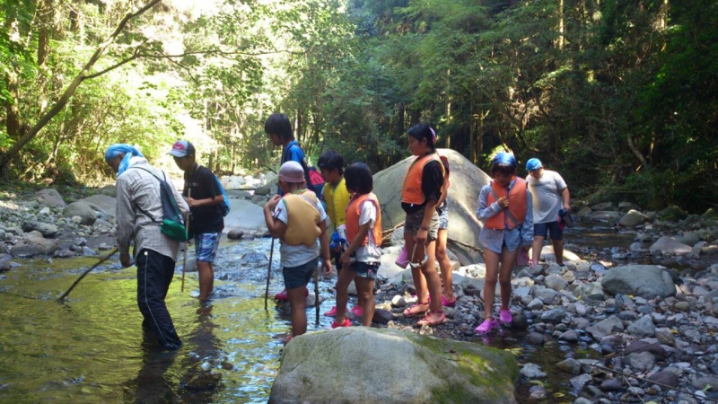 石の下にどんな生き物がいるのか、川辺にはどんな植物が生えているのかを