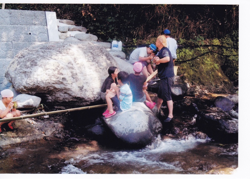 お世話になった両堀田さん、佐藤さん(流しソーメンの竹を川の中を担いでいただきました)