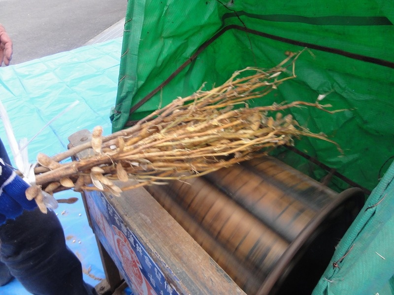作業は、大豆の乾燥が不十分で、もう一度乾燥をやり直すことに