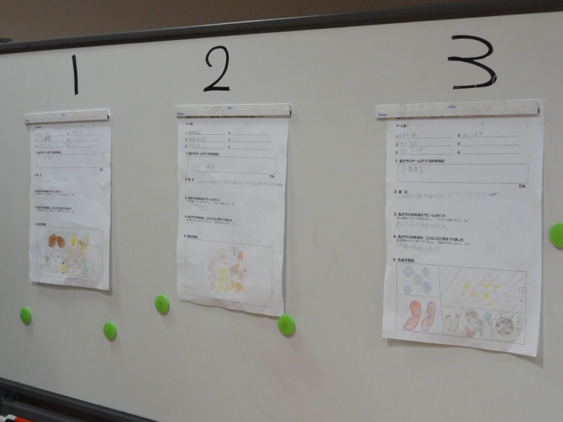 3班それぞれ楽しそうな弁当が決まりました。食推協の井上会長にお手伝いいただきました。