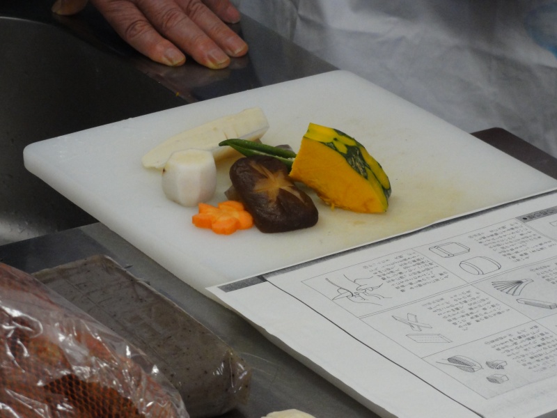 野菜は飾り切りをし京風の味付けをしました。野菜の切り落としはもったいないので
