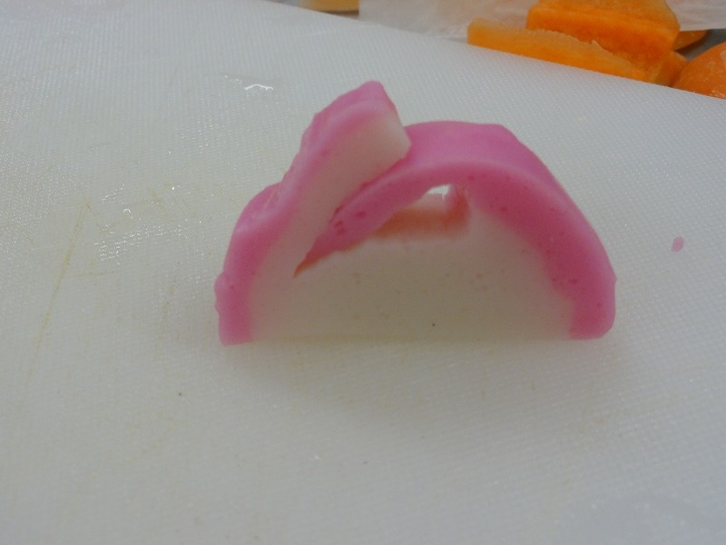 ニンジンと大根は梅、カマボコはうさぎにかたどりました。