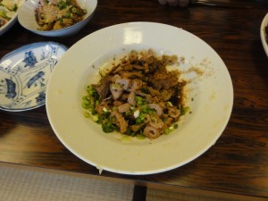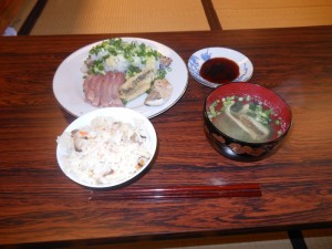 ご飯は4月に会員の竹林で行った筍パーティーの筍を冷凍していて炊き込みご飯にしました。